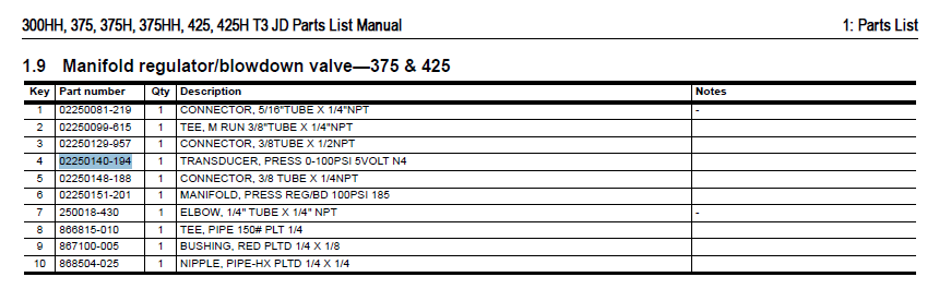 02250140-194 Sullair Pressure Transducer Replacement