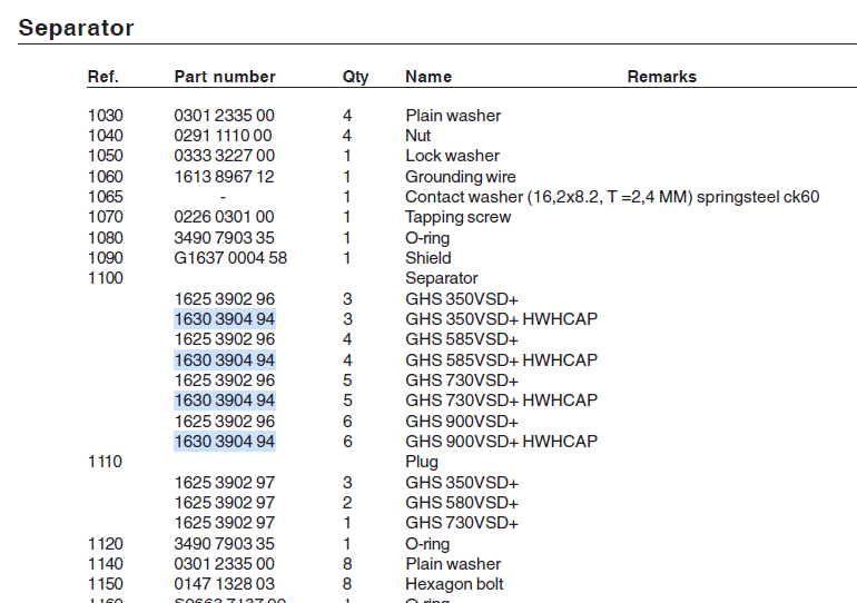 1630 3904 94 Oil Separator Element Vacuum OEM x1