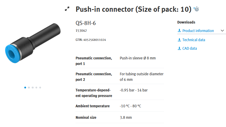 QS-8H-6 Push-in connector pack of 10
