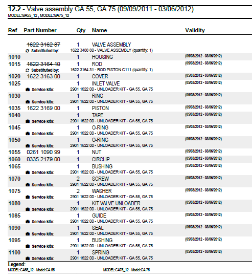 12.2 - Valve assembly GA 55, GA 75 (09/09/2011 - 03/06/2012)